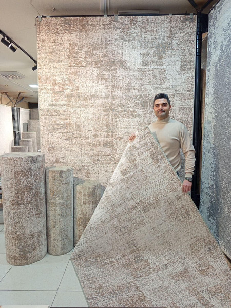 فرش مینیمال رنگ کرم بژ نخ میکروفلامت ۵۰۰ شانه تراکم ۱۲۰۰